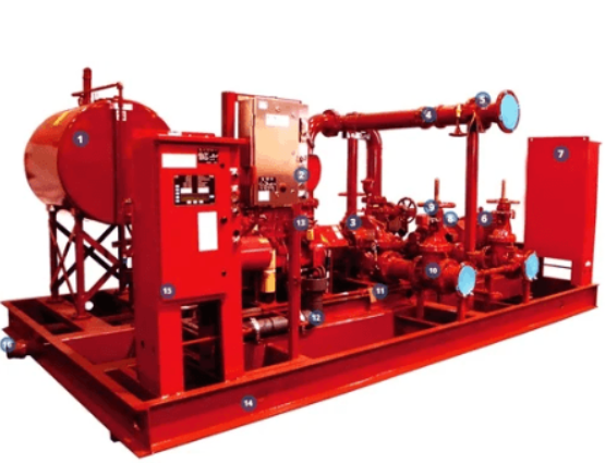 A fire pump skid is delivered as a complete, pre-assembled package. It typically includes a diesel pump, electric pump, jockey pump, controllers, valves, and piping. Because everything comes pre-tested and mounted on a single frame, installation is faster and more reliable. This reduces human error, minimizes site work, and ensures the system is ready to perform from day one.